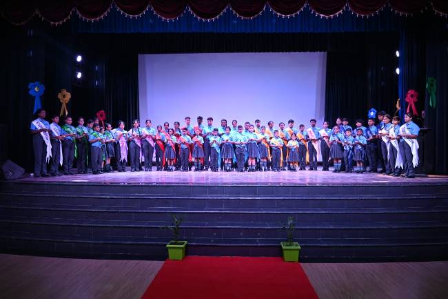 In his inspiring address, the Chief Guest urged the students to lead with integrity and conviction. The ceremony concluded with the school song and a group photograph with the Chief Guest, capturing a proud moment of youthful leadership.